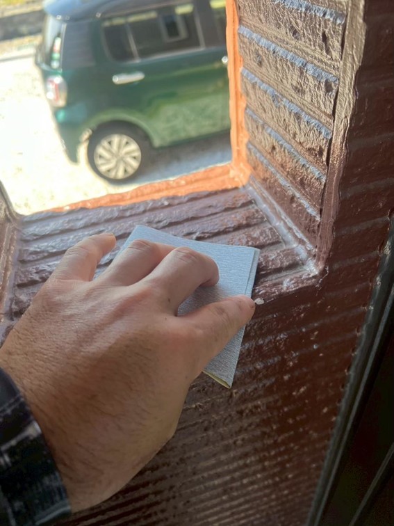 ①補修前に、塗膜が欠けている部分を丁寧に下地処理します。