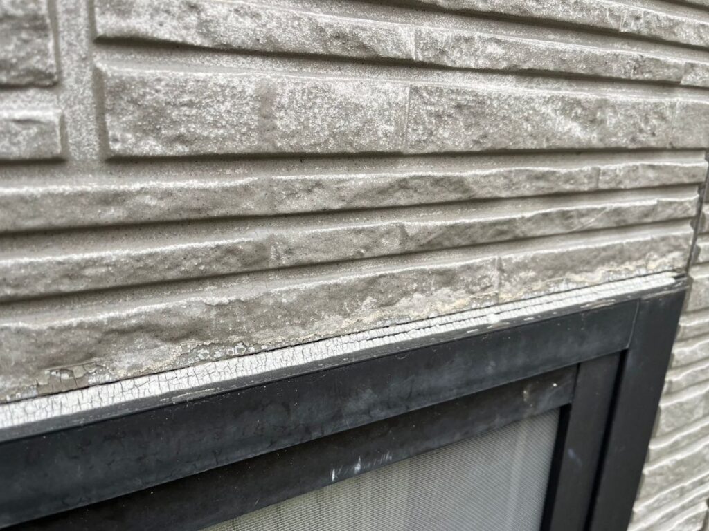 シーリング材がひび割れていました。隙間からは雨水が内部に浸入し、漏水のリスクとなりますので早急なメンテナンスが必要な状況です。
