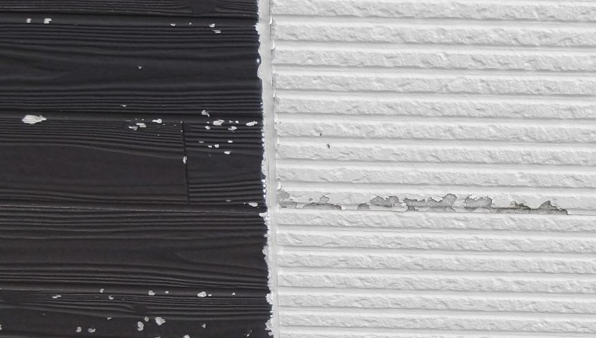 塗膜剥離・欠け・割れ・クラック・北面の苔とカビの発生、また、シーリング材も中央部から破断しておりました。