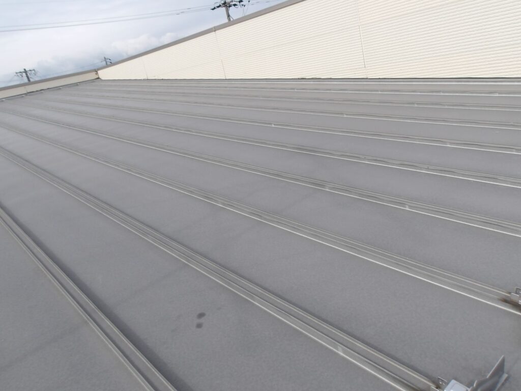 上塗りは2回行い、膜厚を付けて丈夫な屋根にします。