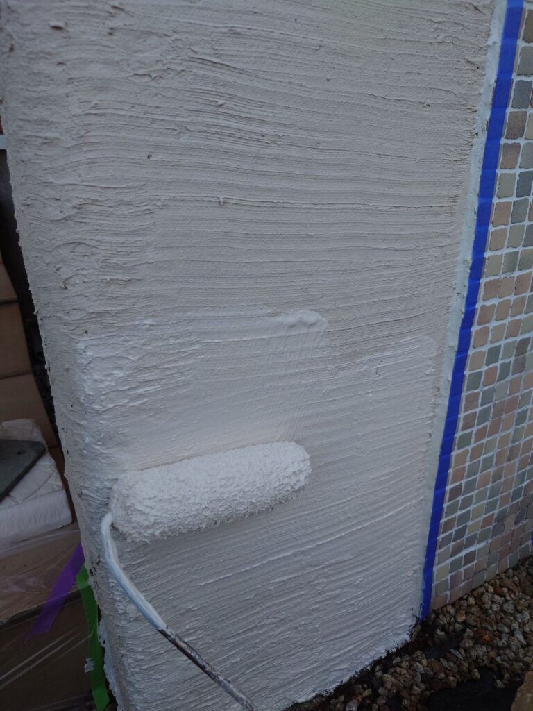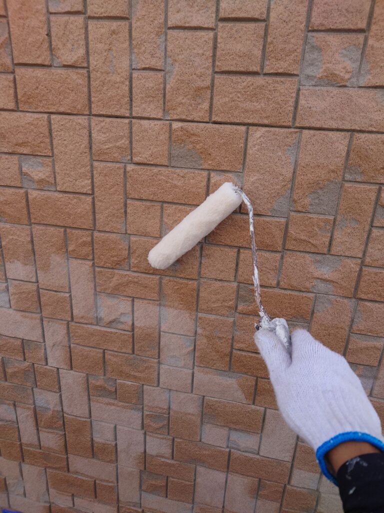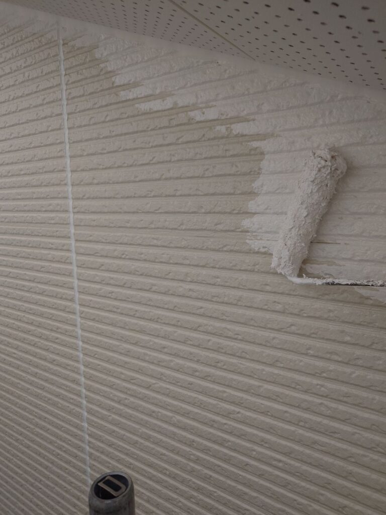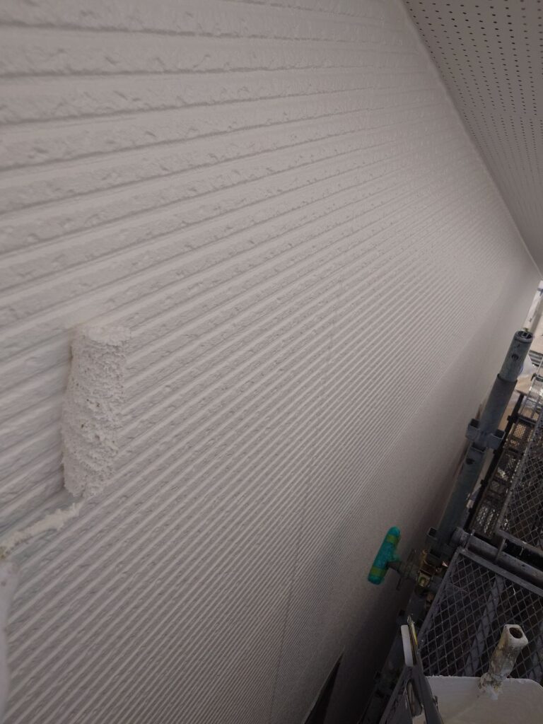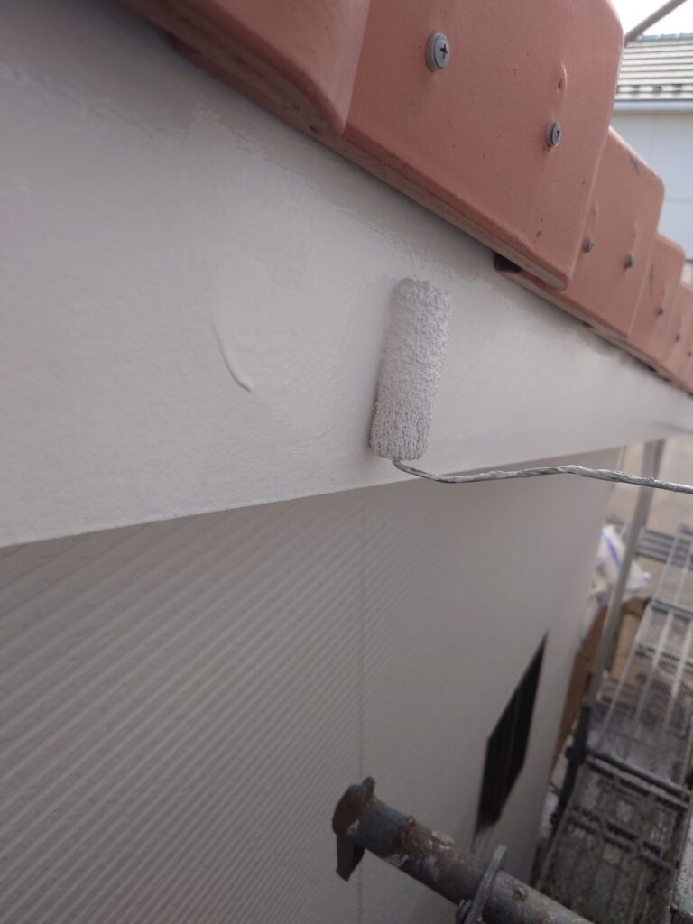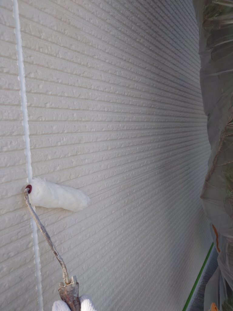 下塗り後、上塗り1回目(中塗り)をおこないます。主な目的は、塗膜の厚みを確保することです。