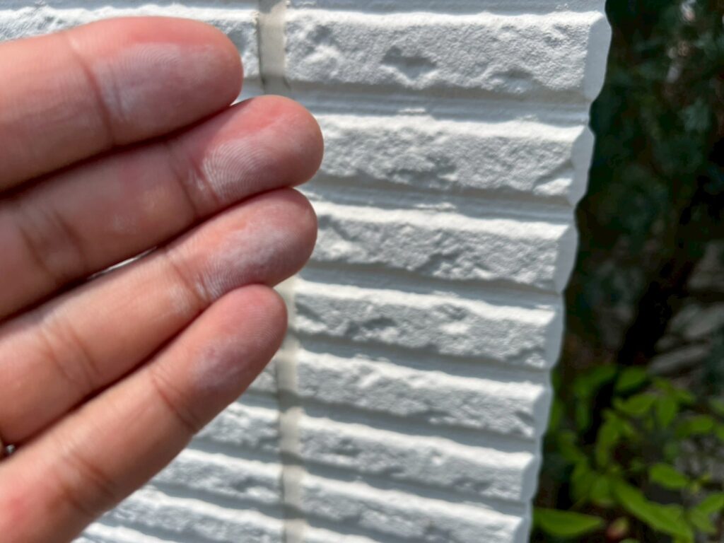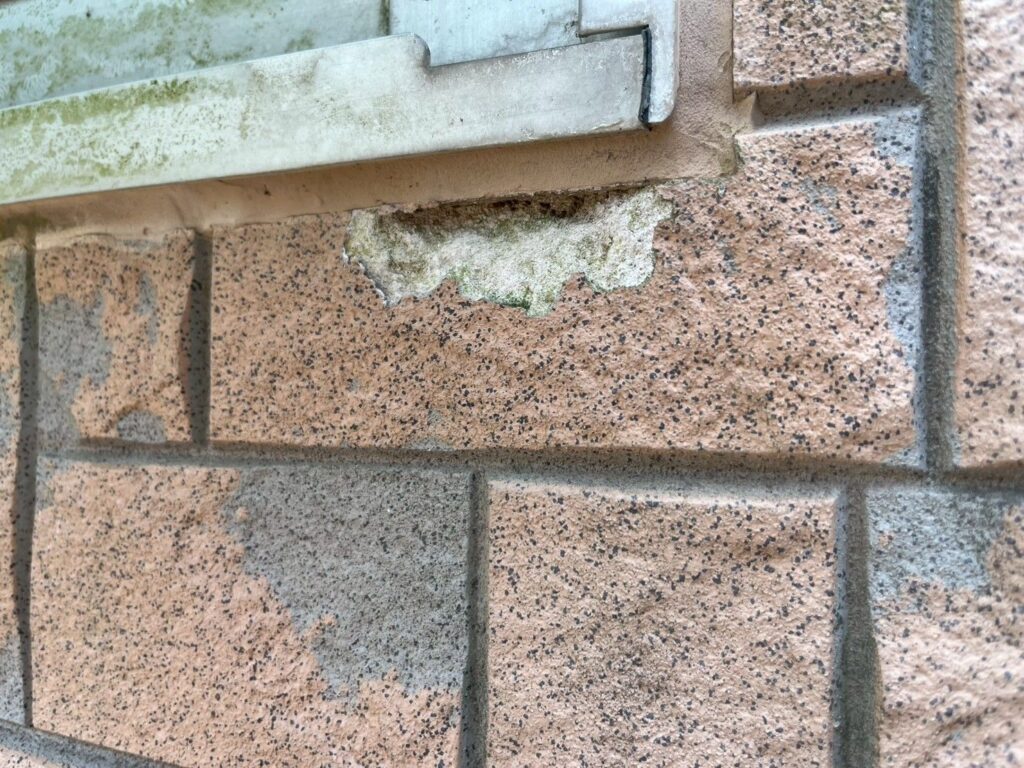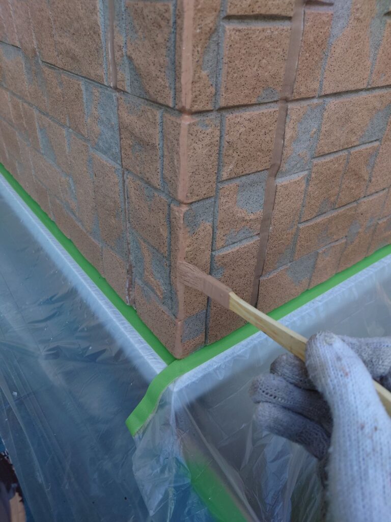 塗装をする前に、外壁材が欠けた部分の補修をおこないました。