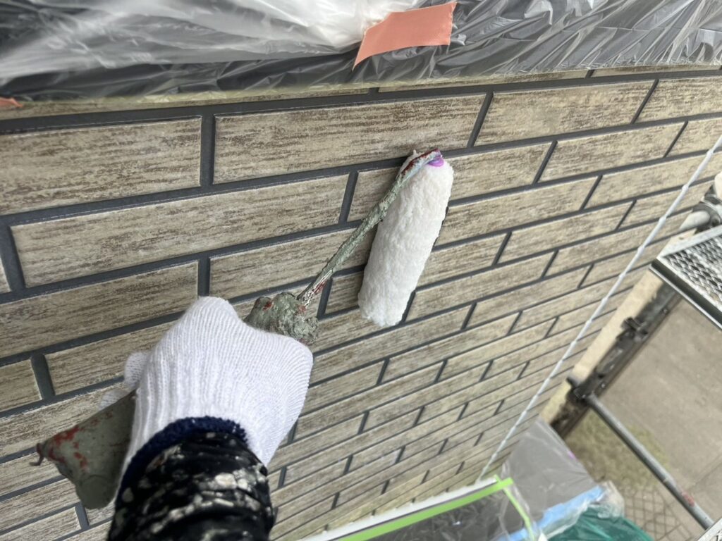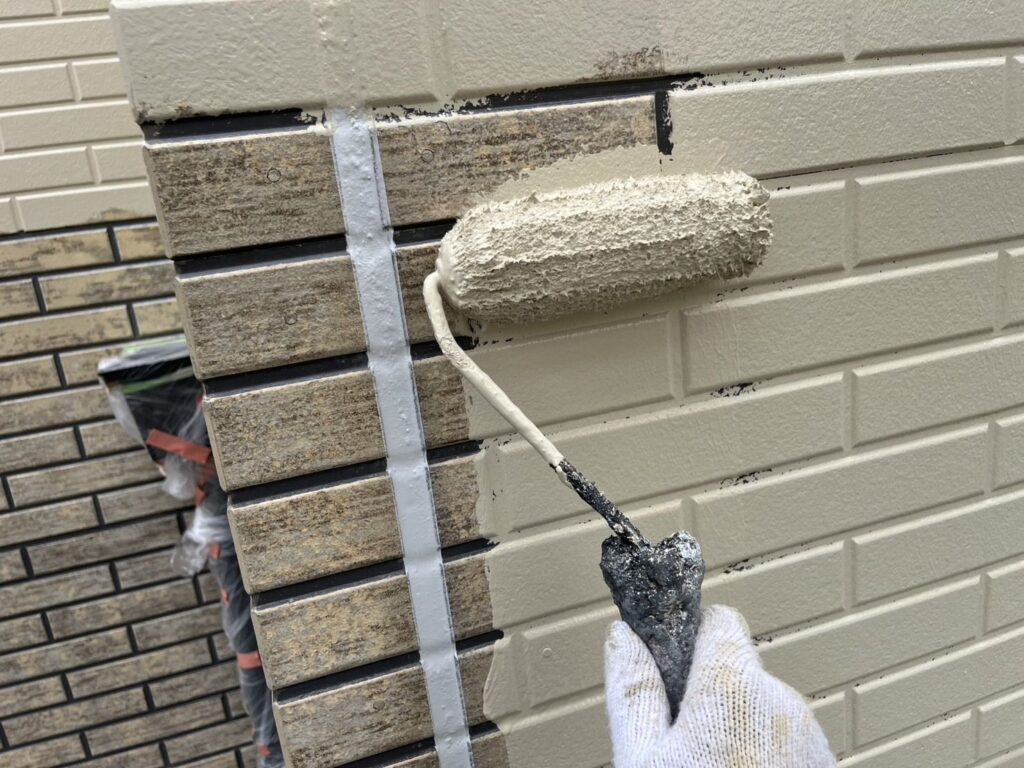 下塗り後、上塗り1回目(中塗り)をおこないます。主な目的は、塗膜の厚みを確保することです。