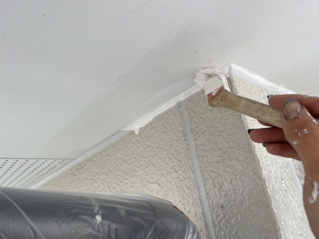 軒天は、構造上湿気が溜まりやすく、カビが発生しやすい場所になります。防カビ効果のある塗料で塗装をおこないます。
