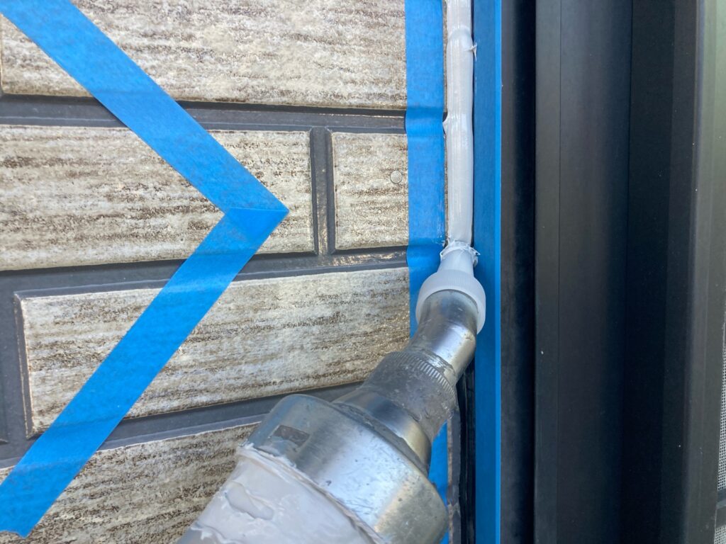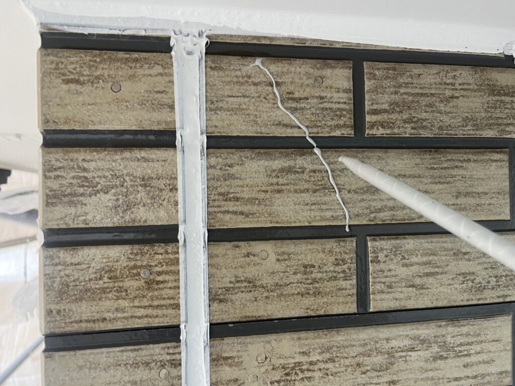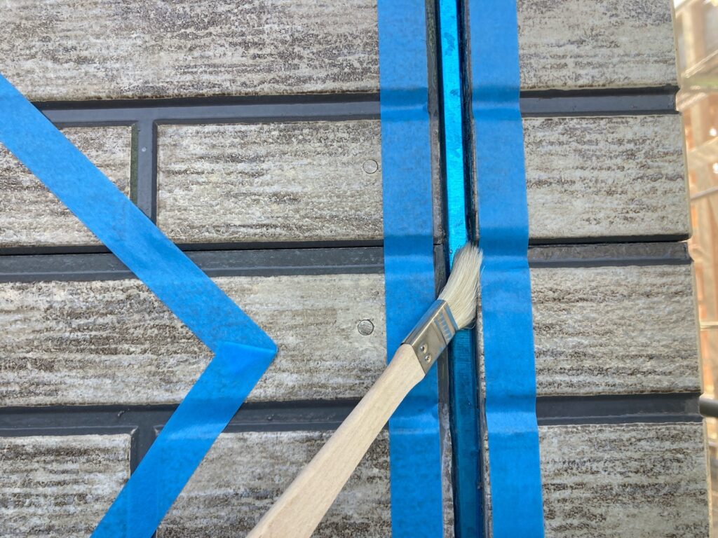 新しいコーキングを充填します。外壁を塗装する時に一緒に塗装するので、仕上がりは外壁色になります。