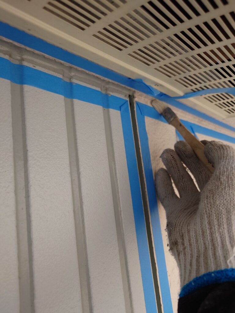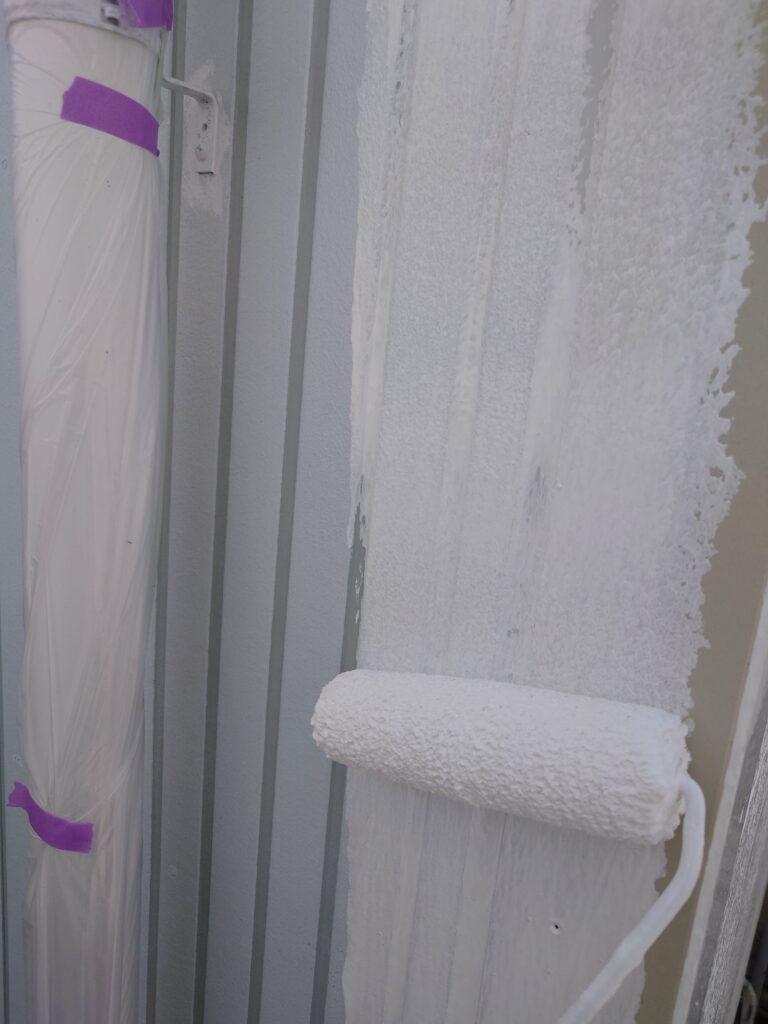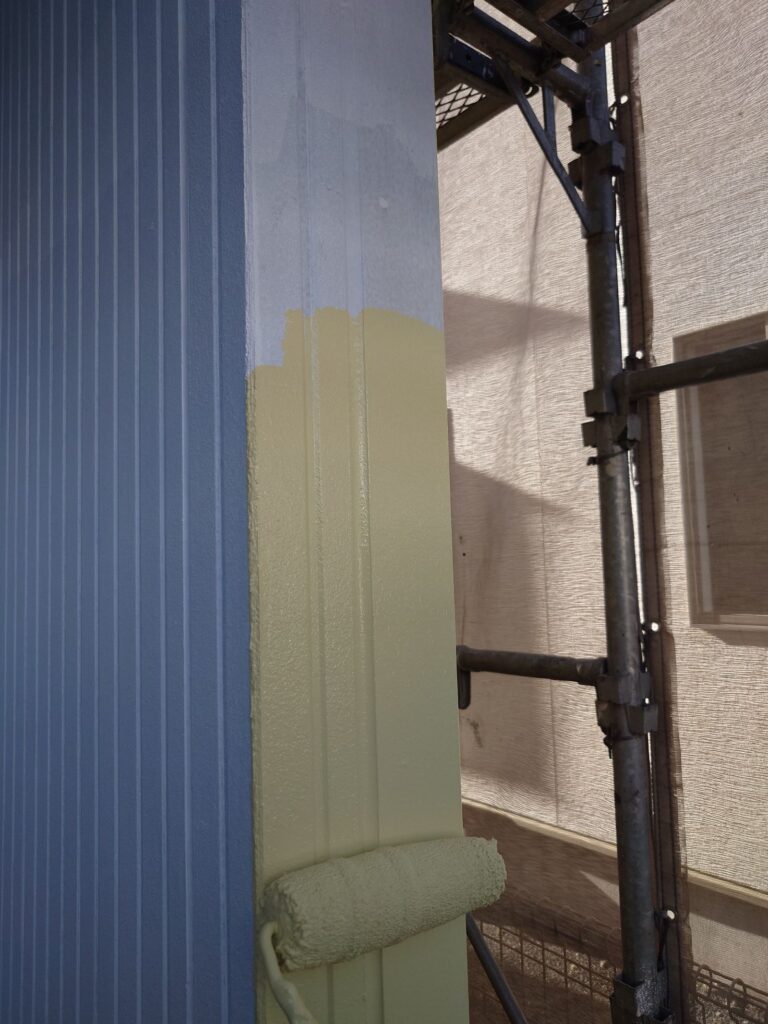 下塗り後、上塗り1回目(中塗り)をおこないます。主な目的は、塗膜の厚みを確保することです。