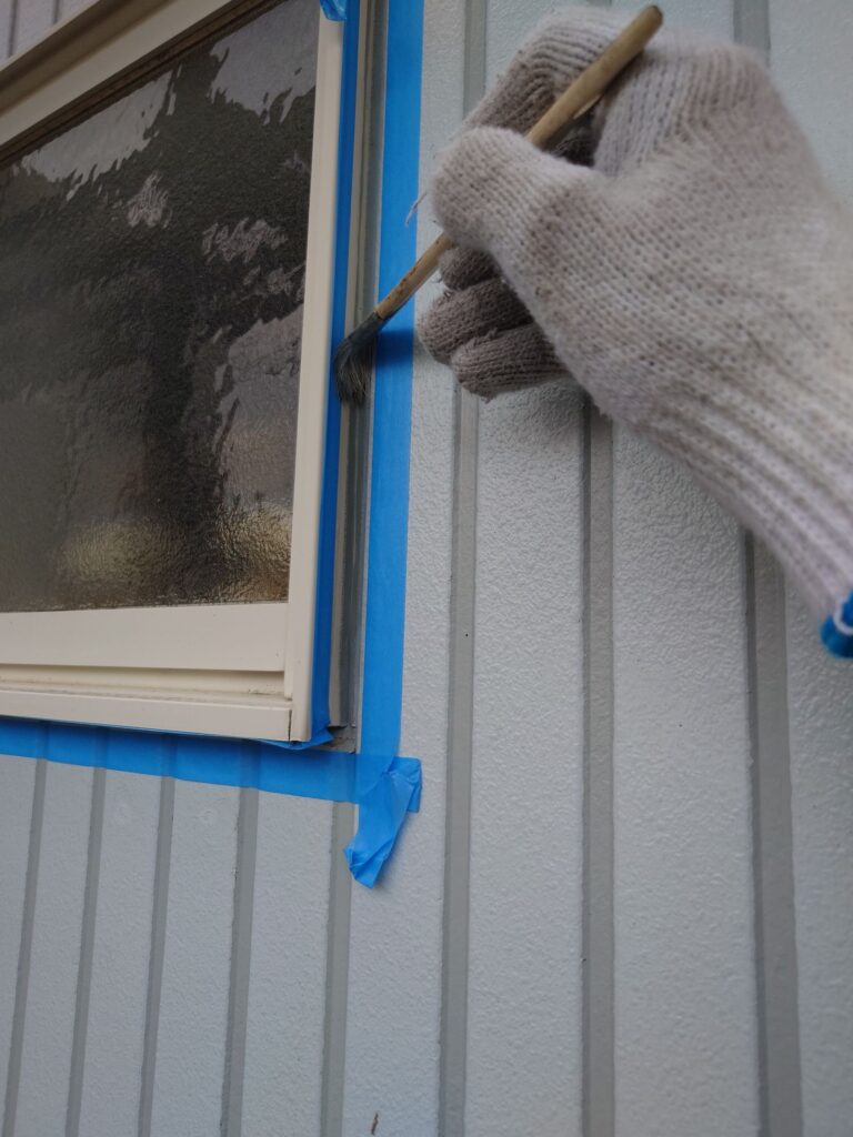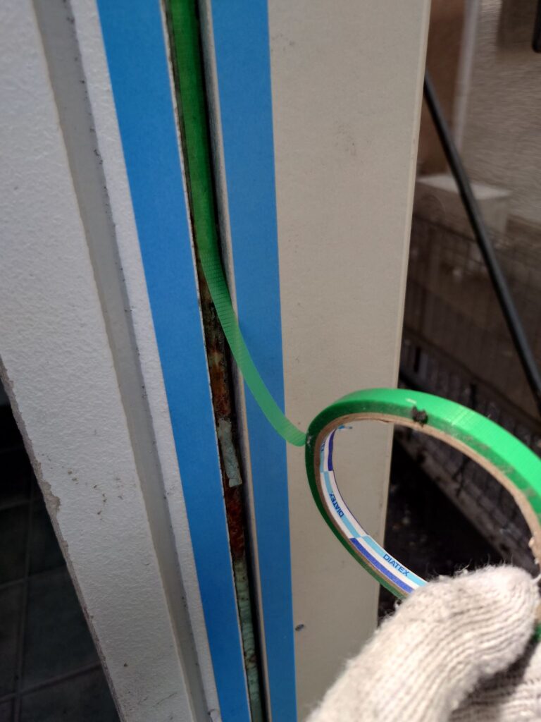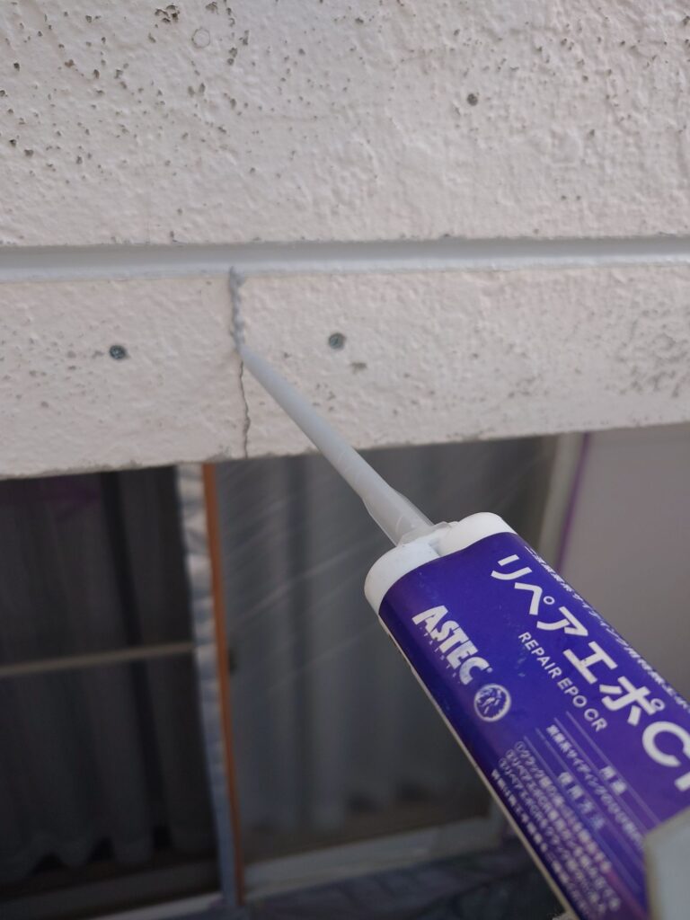 新しいコーキングを充填します。外壁を塗装する時に一緒に塗装するので、仕上がりは外壁色になります。
