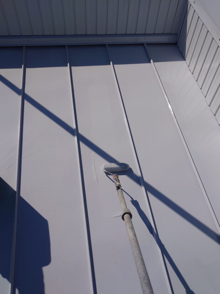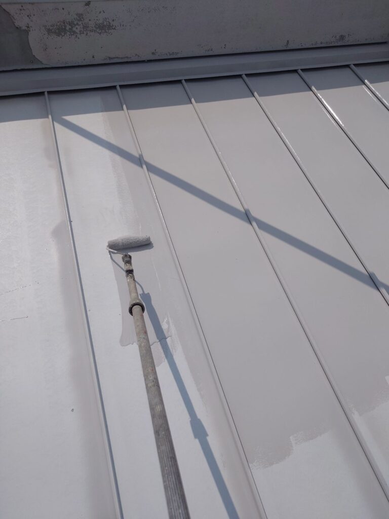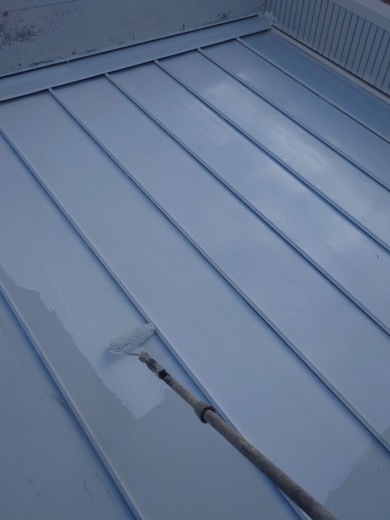 上塗りは2回行い、膜厚を付けて丈夫な屋根にします。