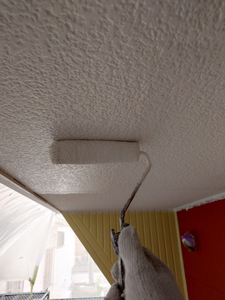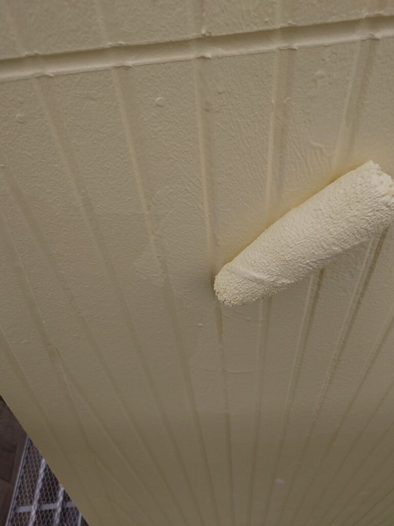 軒天は、構造上湿気が溜まりやすく、カビが発生しやすい場所になります。防カビ効果のある塗料で塗装をおこないます。