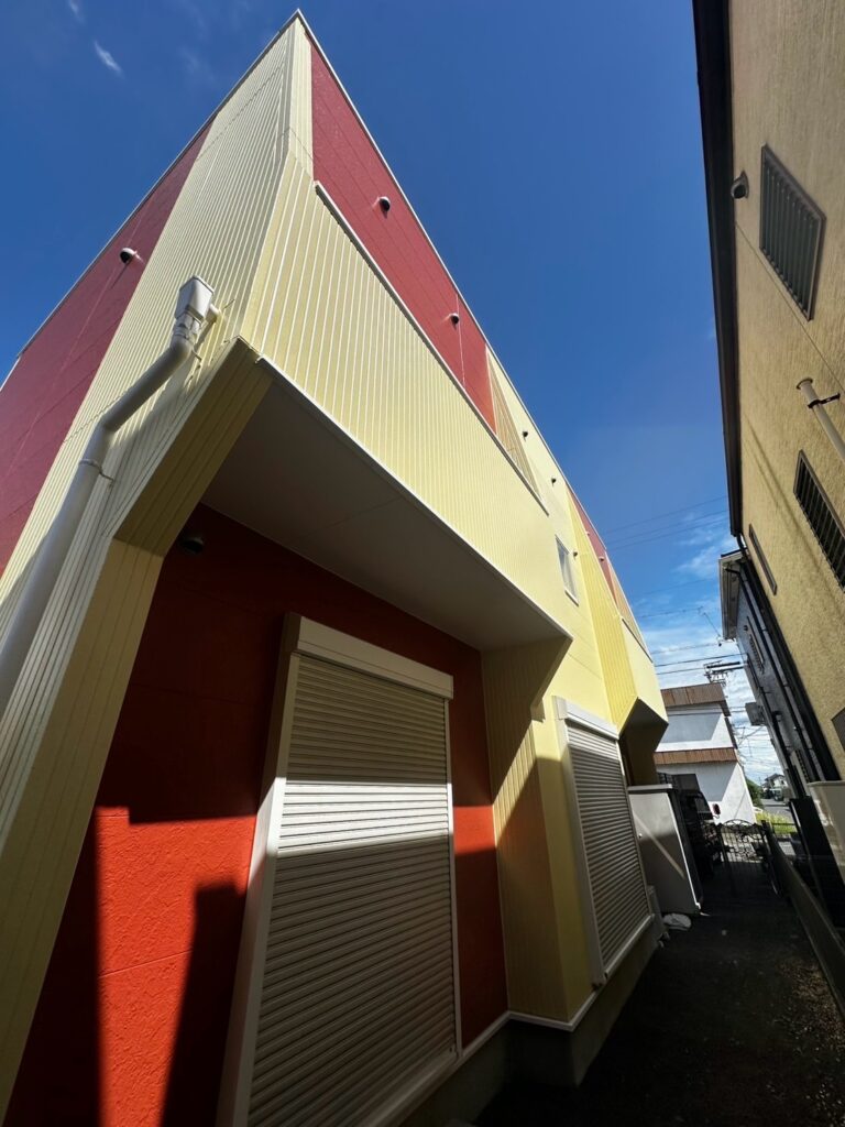 デザイン性の高い建物が「シナモン×レモン」の塗り分けでより一層映えますね!ご依頼ありがとうございました。