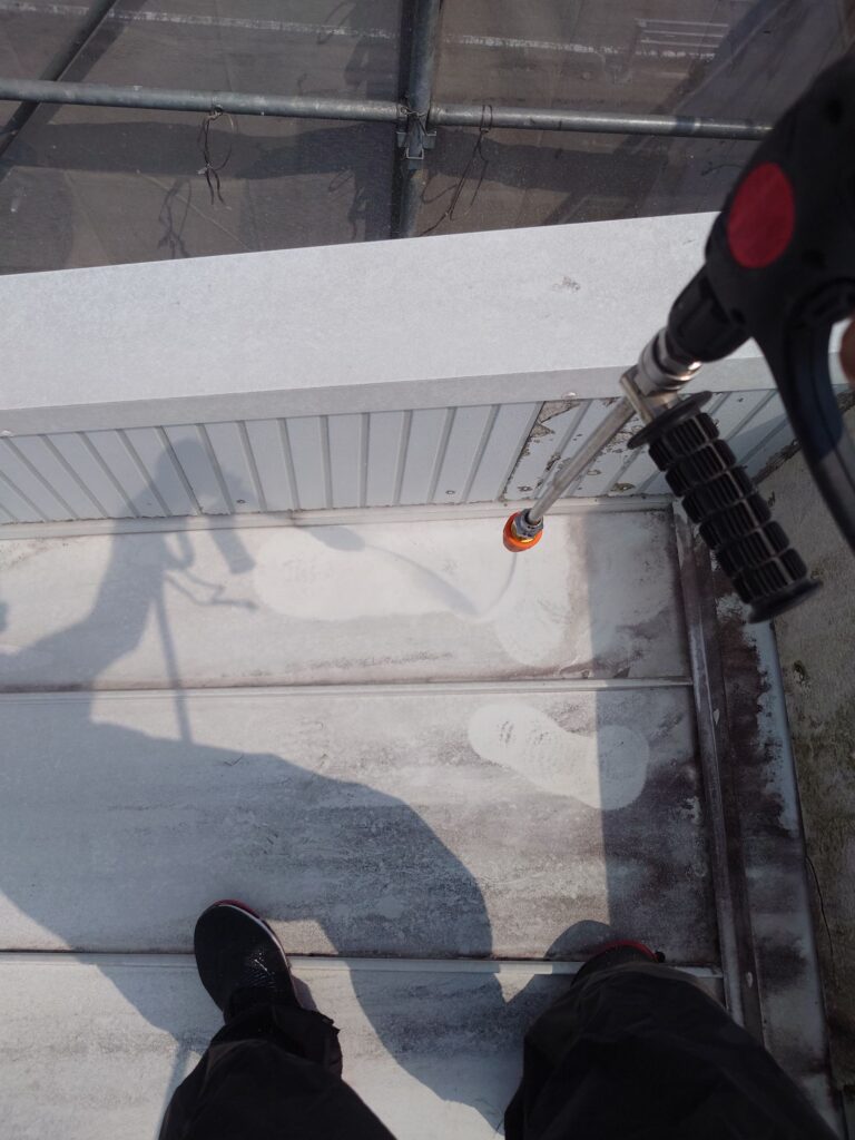 高圧洗浄で長年蓄積された汚れを落とします。汚れが付いたまま塗装をしても塗料が密着しません。高圧洗浄はとても大切な工程です。