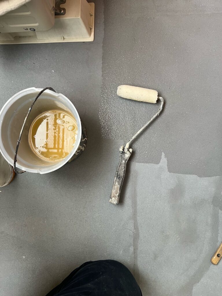 下塗り後、ウレタンのトップコート1回目をおこないました。
