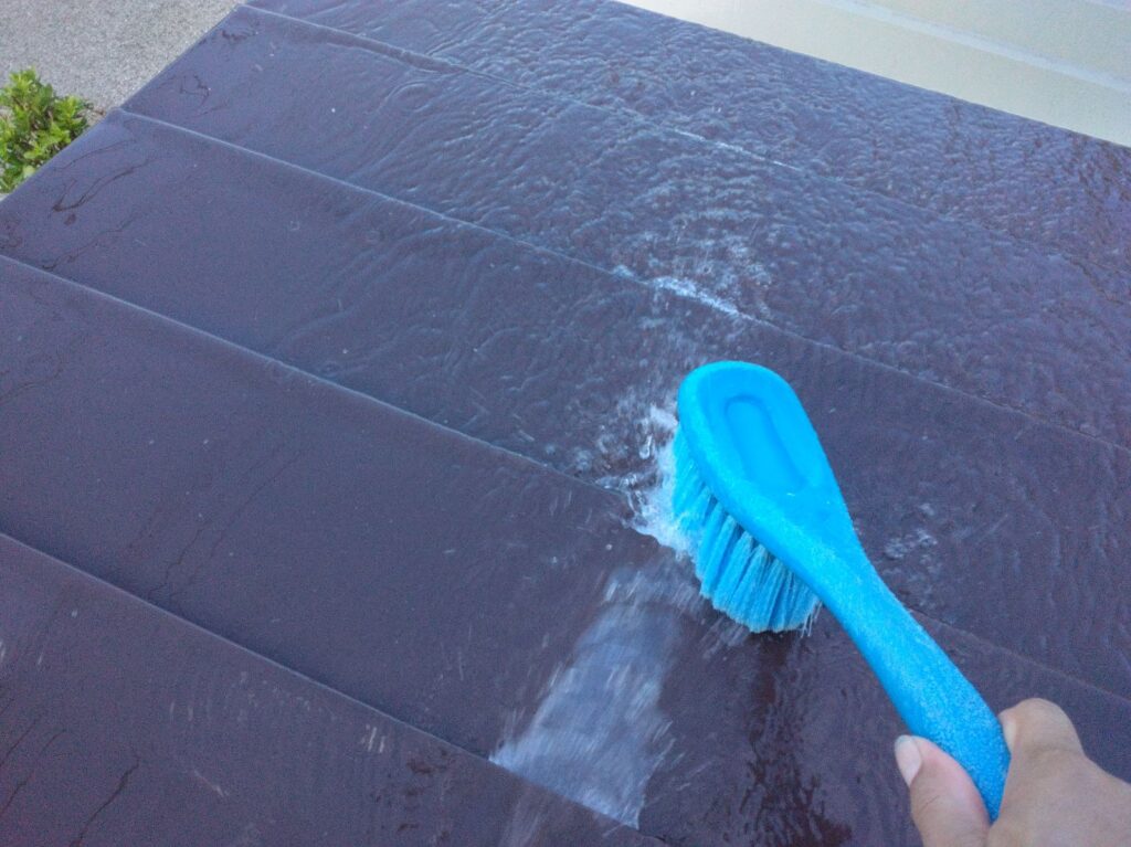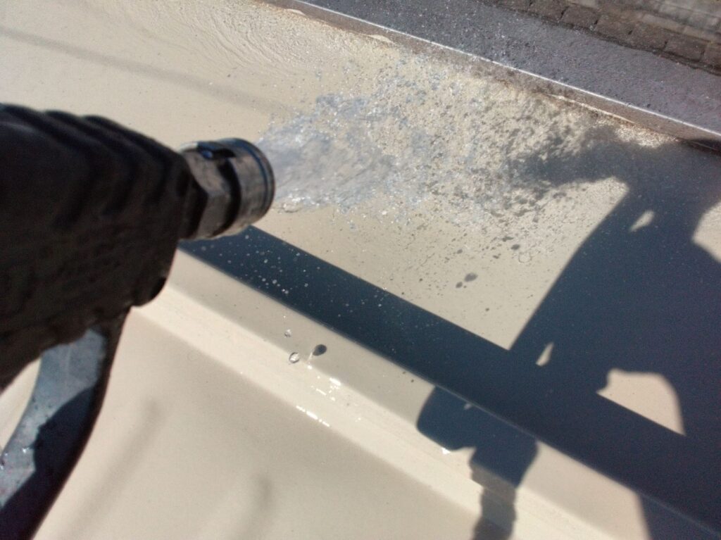 手洗い洗浄をおこないました。汚れが付いたまま塗装をしても塗料が密着しません。高圧洗浄はとても大切な工程です。