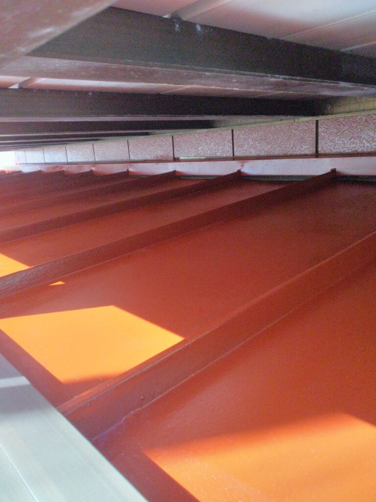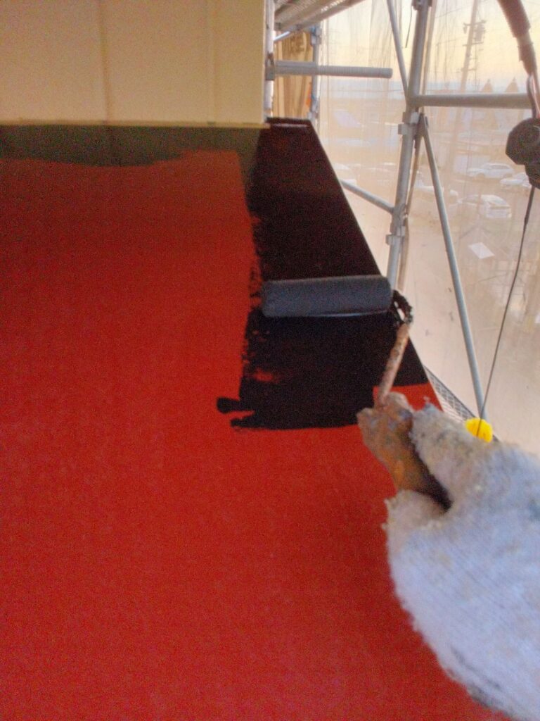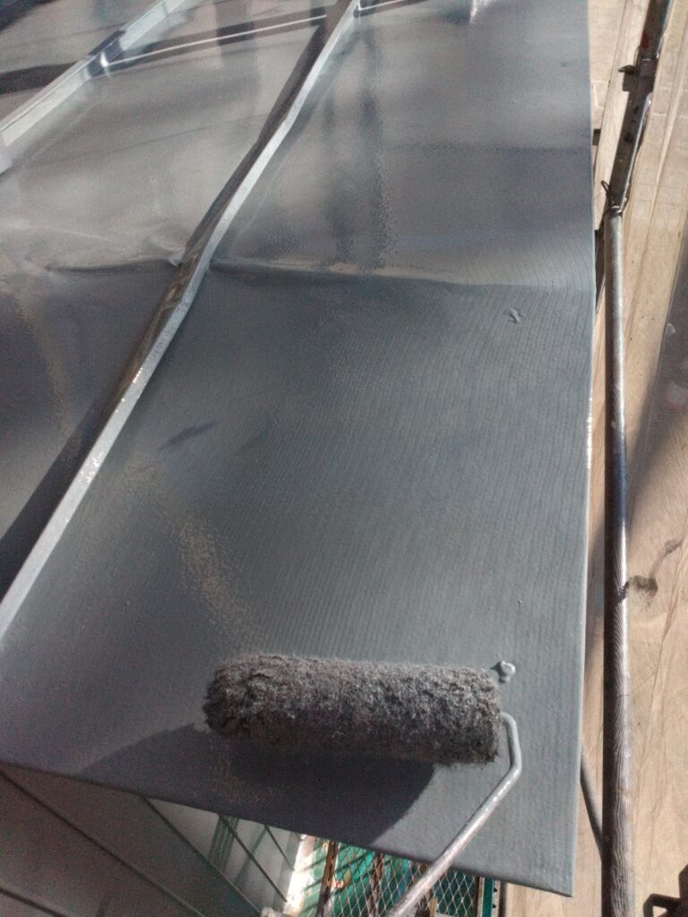 上塗りは2回行い、膜厚を付けて丈夫な屋根にします。