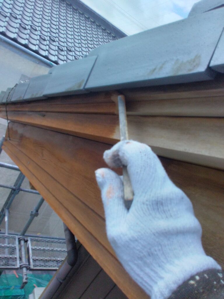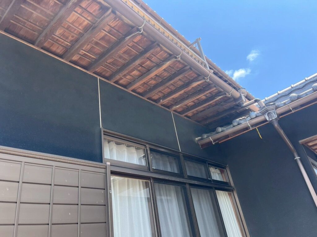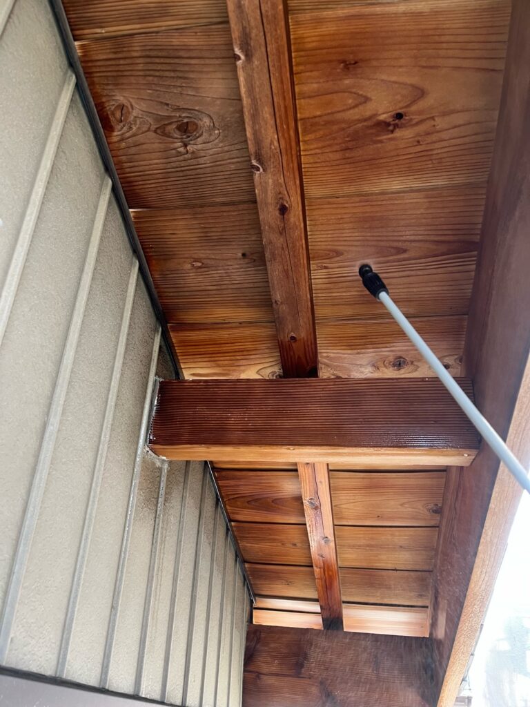 軒天や破風などの木部は、塗装前に木部洗いを実施しました。