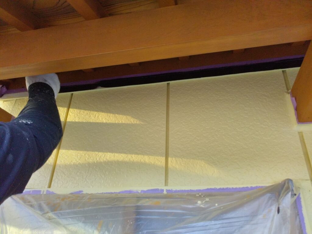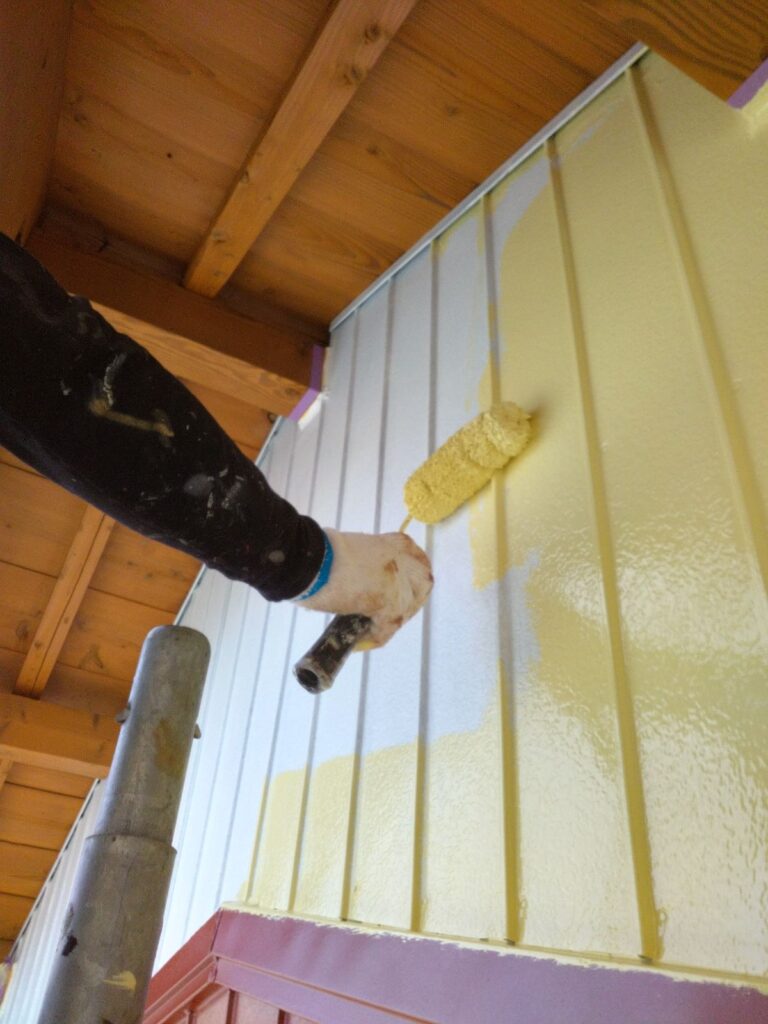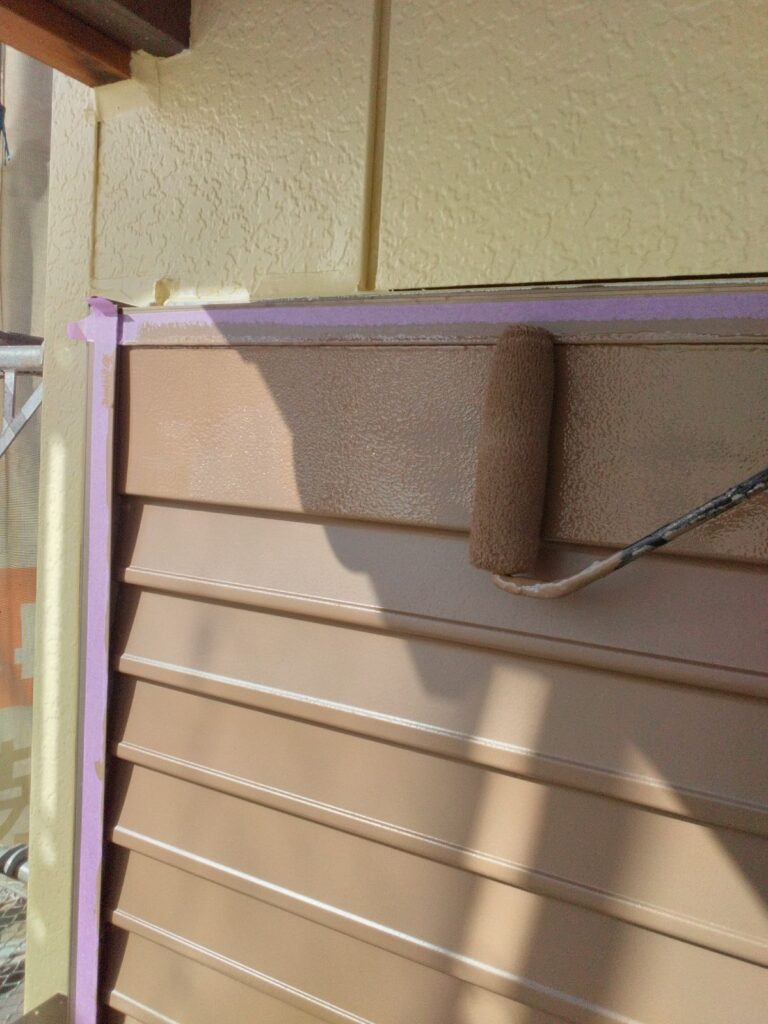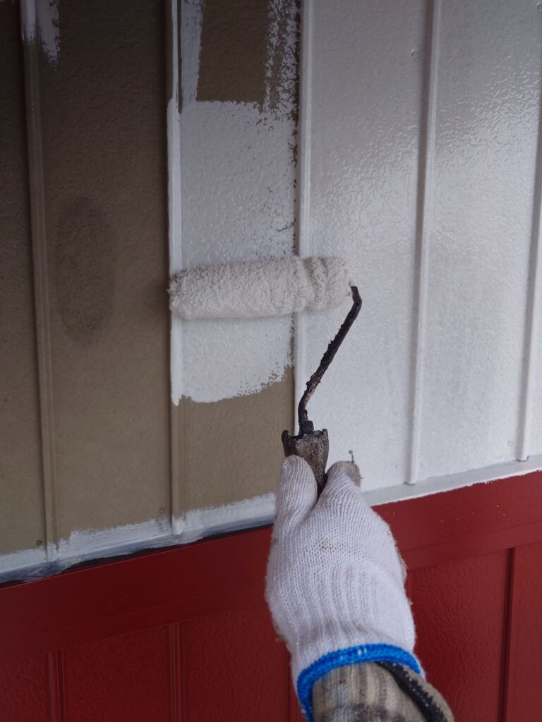 下塗り後、上塗り1回目(中塗り)をおこないます。主な目的は、塗膜の厚みを確保することです。